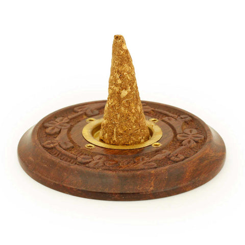Wooden Round Carved Incense Burner (sticks & cones)