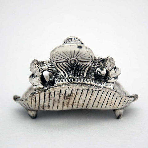 Silver Ganesh Leaf Cone Incense Burner 3"